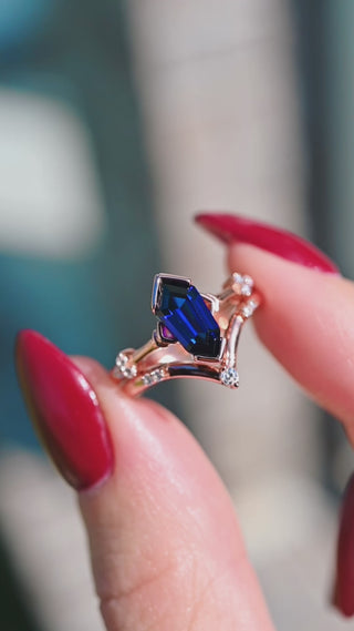 Introducing our Coffin Cut Blue Sapphire Ring, a captivating and edgy expression of love and commitment. This unique engagement ring is crafted with precision from 14K Rose Gold Vermeil , ensuring a sleek and contemporary aesthetic that stands out from the ordinary.