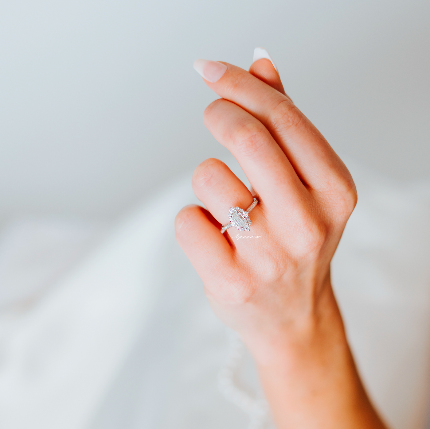 Vintage-Inspired Emerald Cut Moissanite Engagement Ring