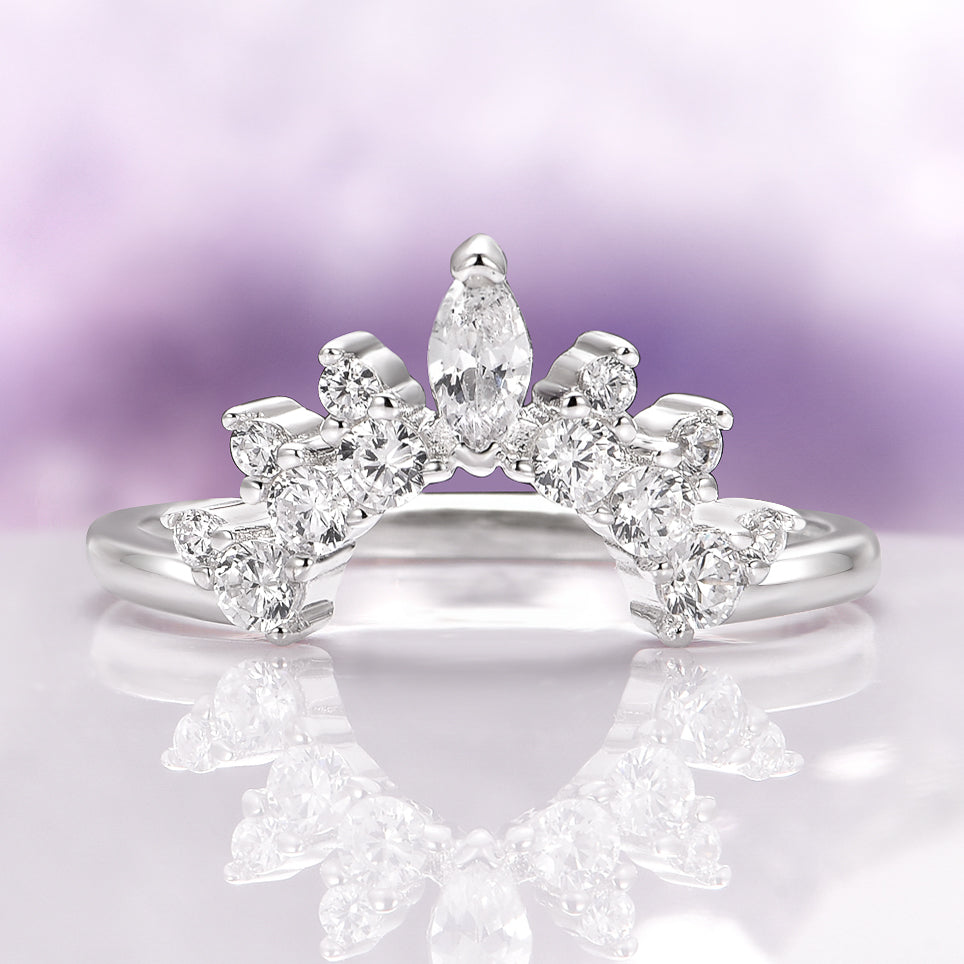 Tiara Curved Diamond Wedding Band- Sterling Silver