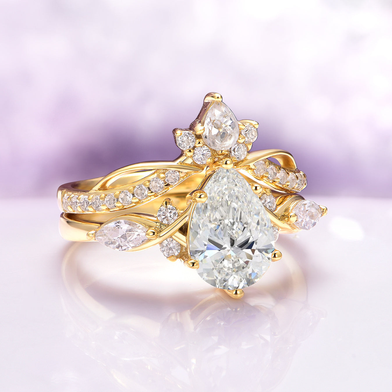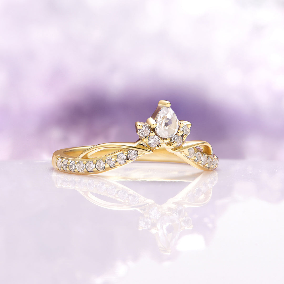 Diamond Crown Wedding Band- 14K Solid Yellow Gold