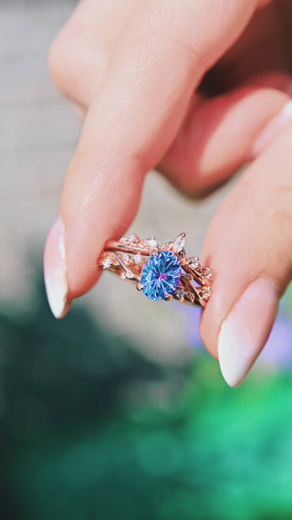 The delicate fairy leaf-inspired band adds a touch of nature's charm, making this piece perfect for those who adore unique, nature-inspired jewelry. Whether as an engagement ring, promise ring, or an unforgettable gift for her, this set embodies romance and individuality.