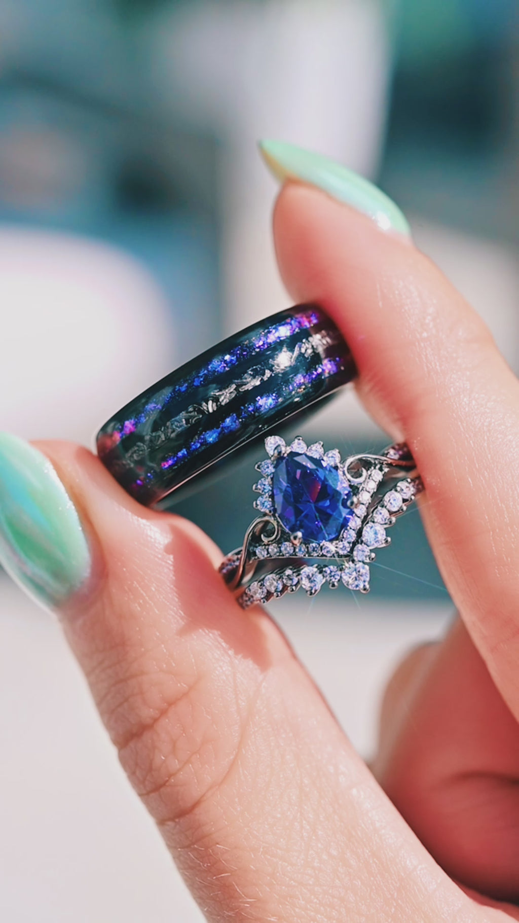 Faye Galaxy Orion Nebula™ & Sapphire Couples Ring Set