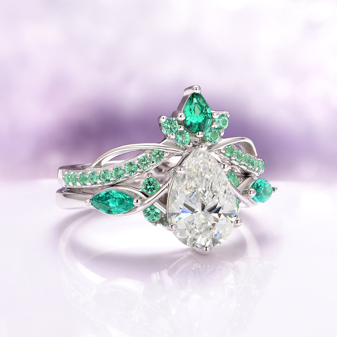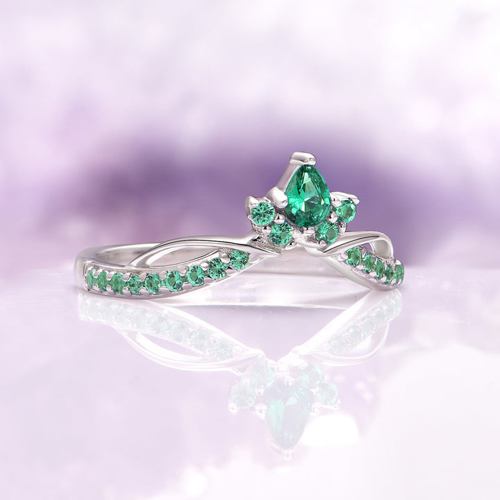 With its rich green glow and crown-like silhouette, this band evokes a sense of enchanted royalty, perfect for lovers of ethereal beauty, magical realism, and nature-inspired elegance. Whether worn as part of a set or on its own, it brings a touch of timeless fantasy to any ring stack.