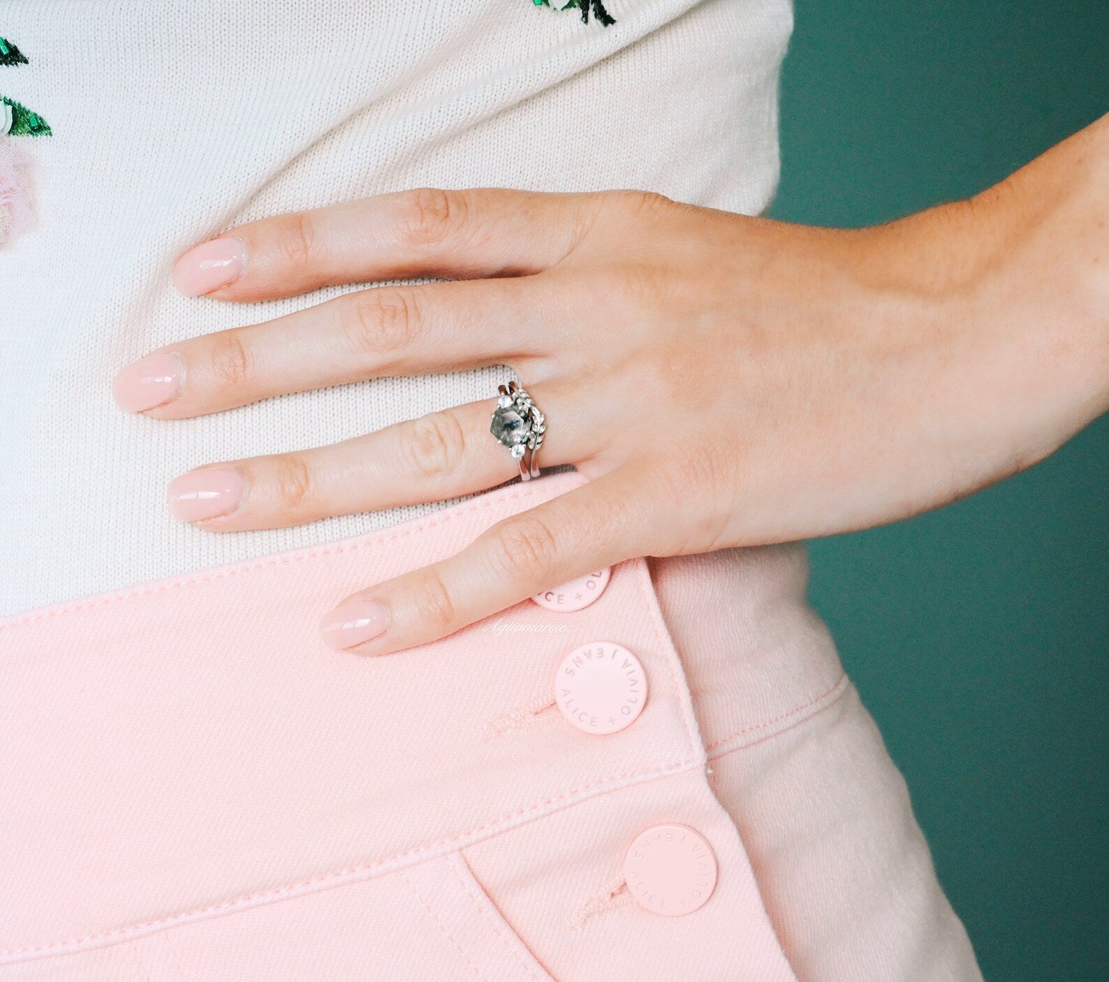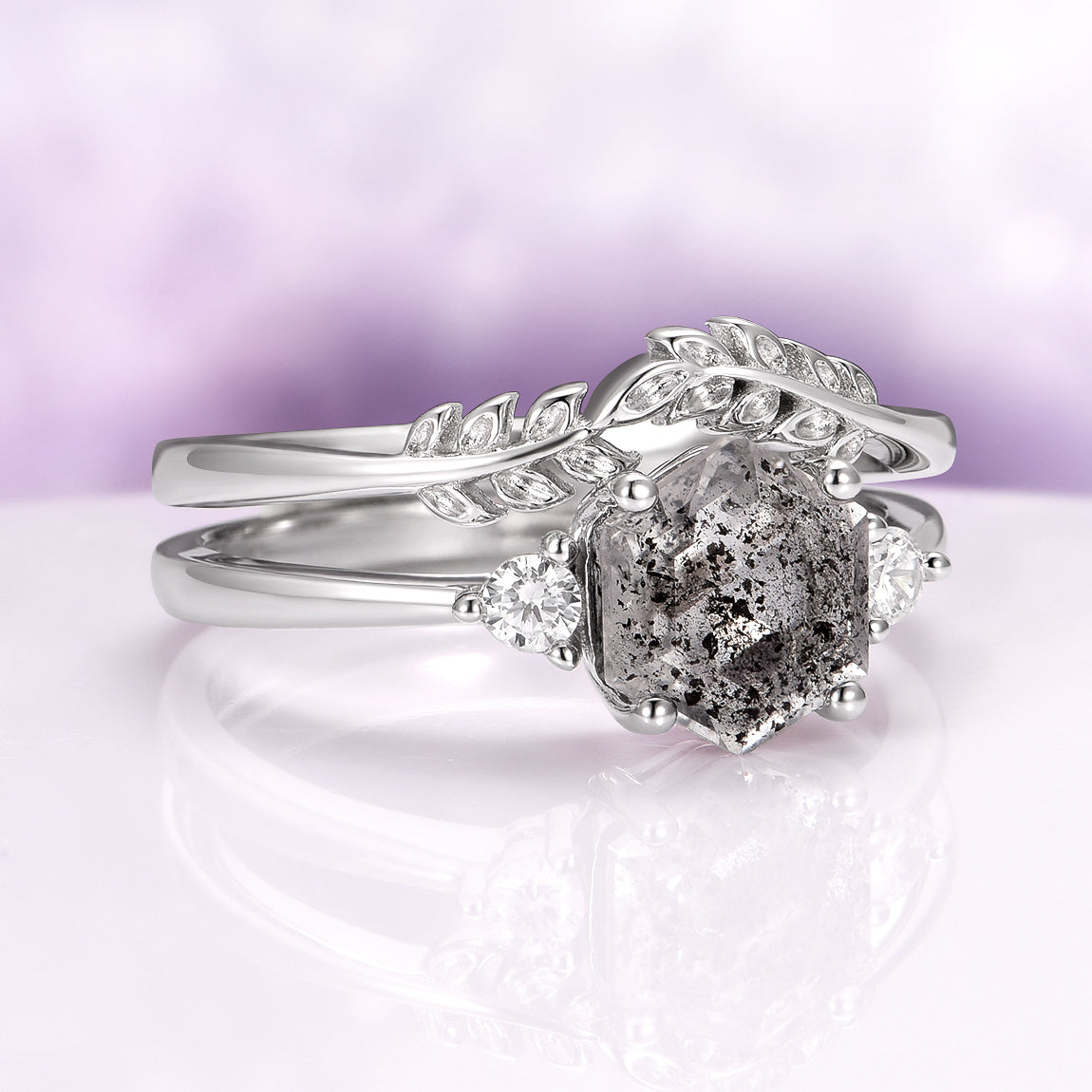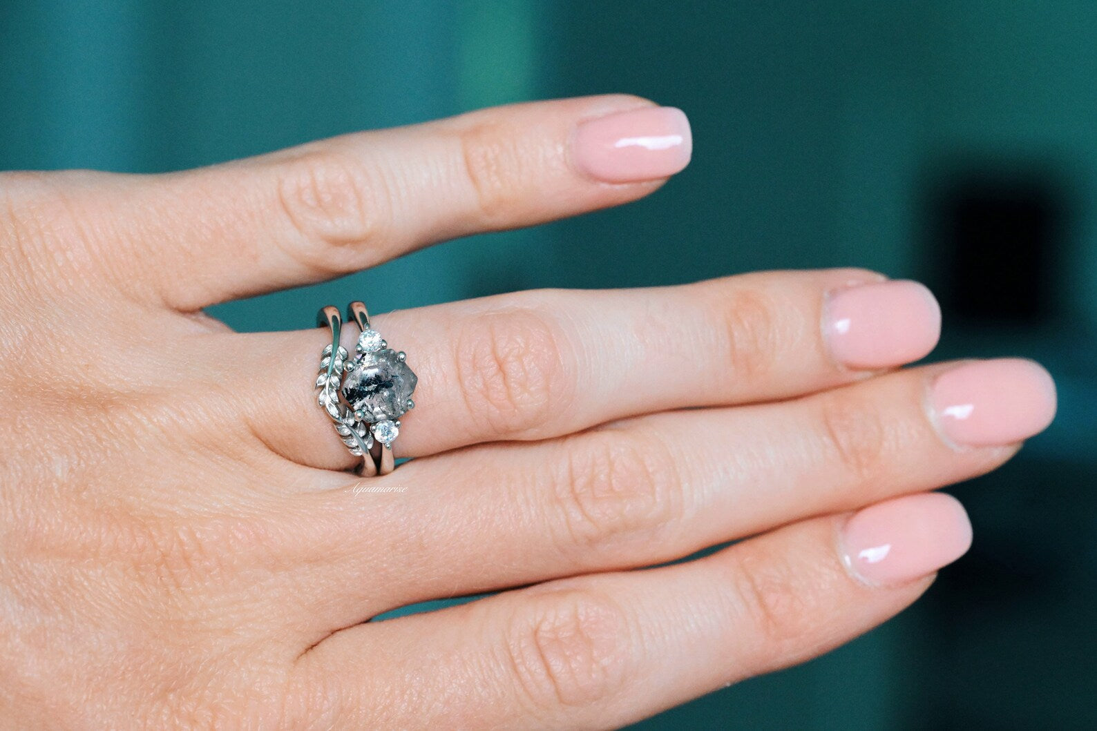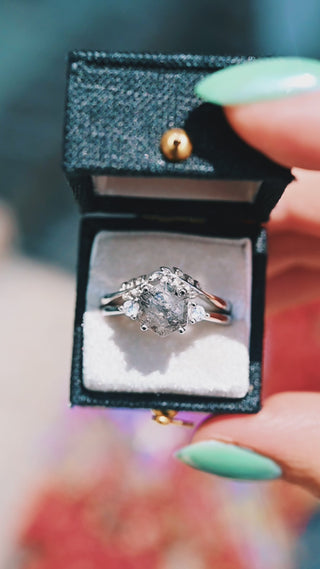 Galaxy Raw Salt & Pepper Diamond (Herkimer Diamond) Ring Set in Sterling Silver