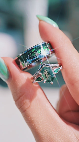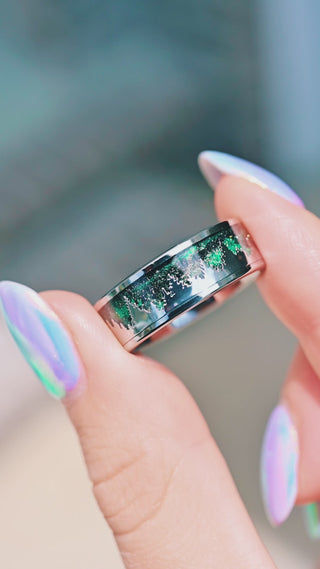 Northern Lights Starry Night Wedding Band in Tungsten (8mm)