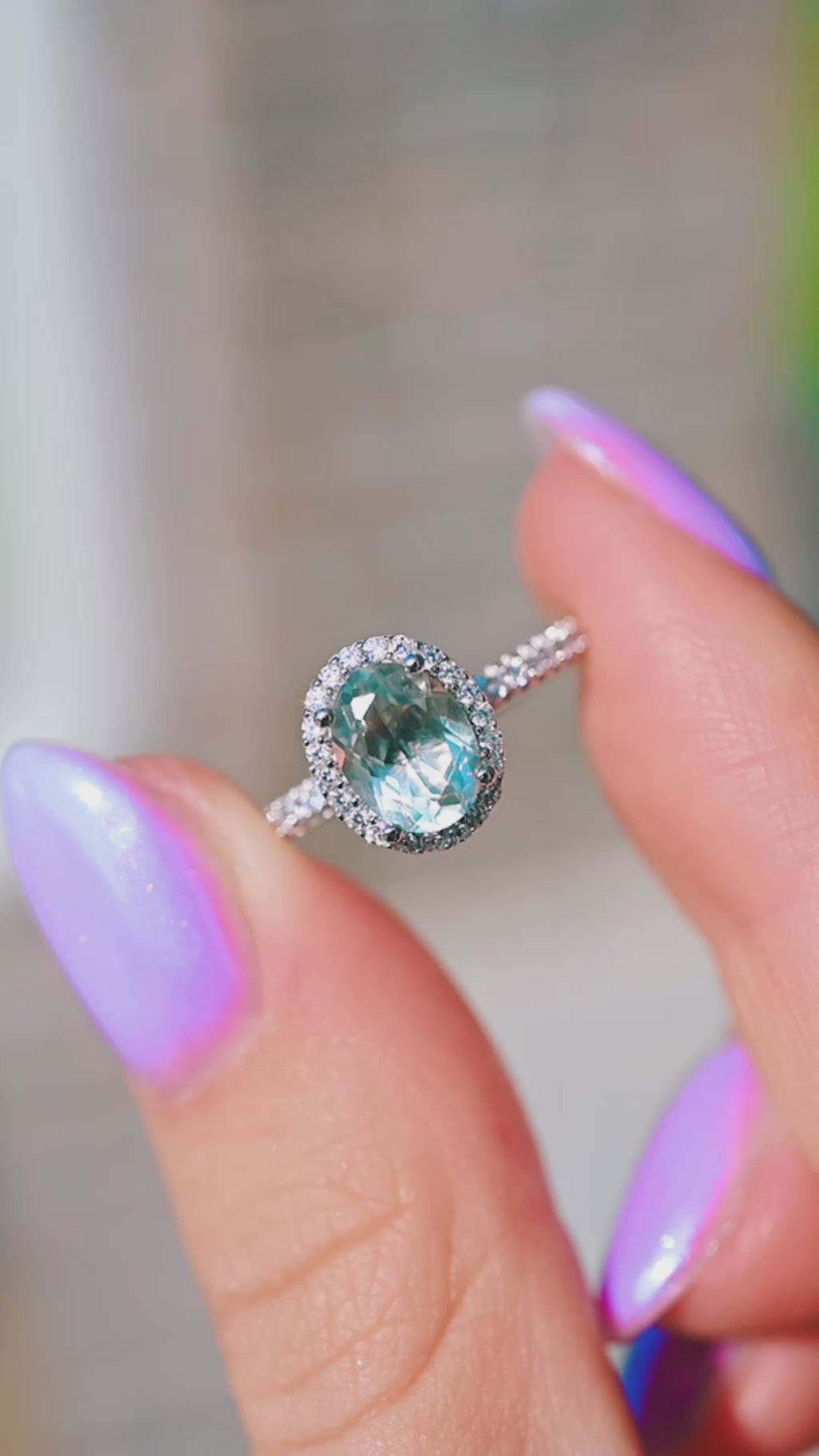 Delicate and radiant, the Iris Green Amethyst Ring in 14K Solid White Gold features a luminous natural light green amethyst center stone in a graceful halo setting, accented by your choice of sparkling moissanite or natural diamonds. This non-traditional engagement ring blends timeless elegance with a fresh, nature-inspired touch.