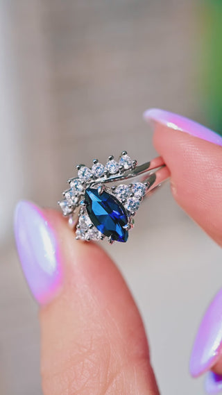 Nadia Marquise Blue Sapphire Bridal Ring Set- Sterling Silver