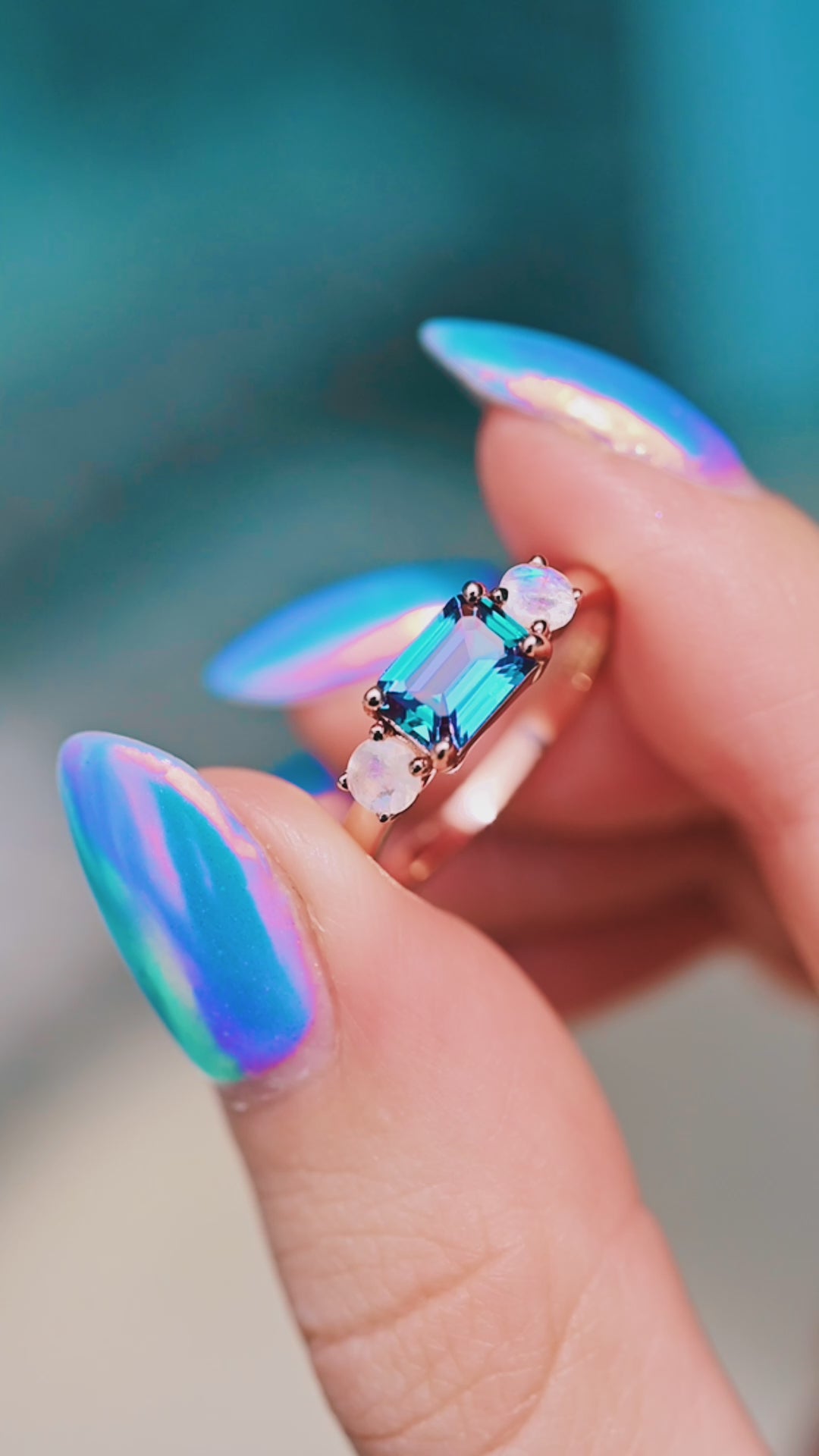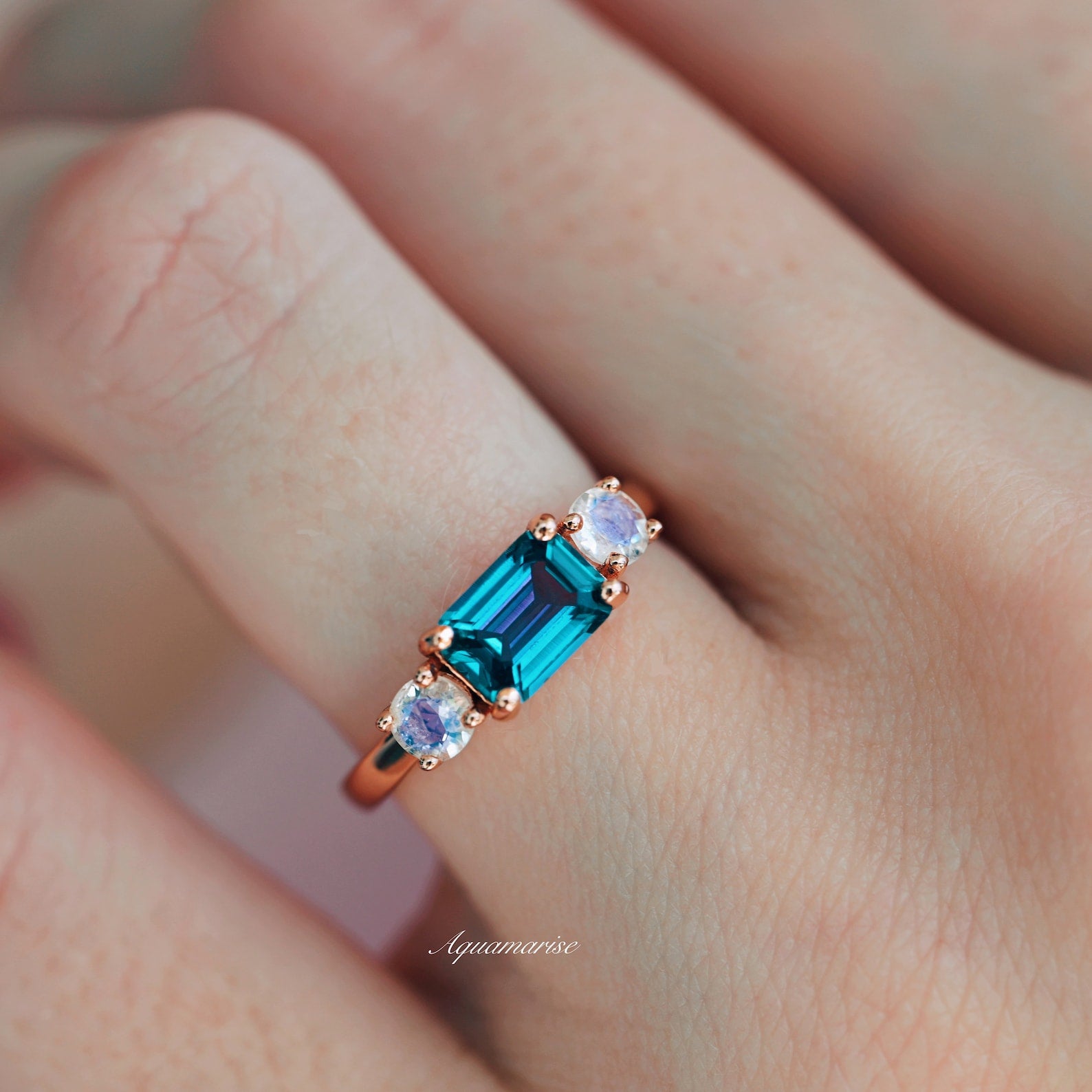 Minimalist Alexandrite & Moonstone Ring in 14K Rose Gold Vermeil