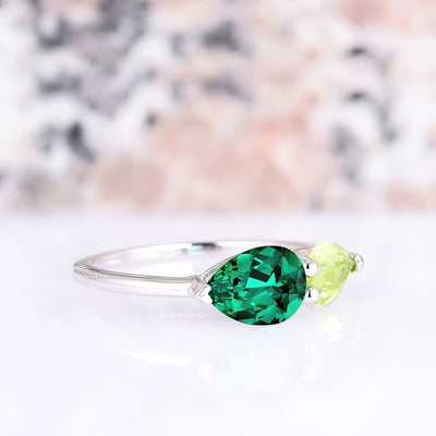 Minimalist Pear/ Teardrop Cut East West Peridot & Emerald Ring, a stunning piece of jewelry designed to capture the essence of elegance and sophistication. Crafted with meticulous attention to detail, this exquisite ring is the perfect choice for a woman who appreciates the beauty of simplicity and the allure of precious gemstones.