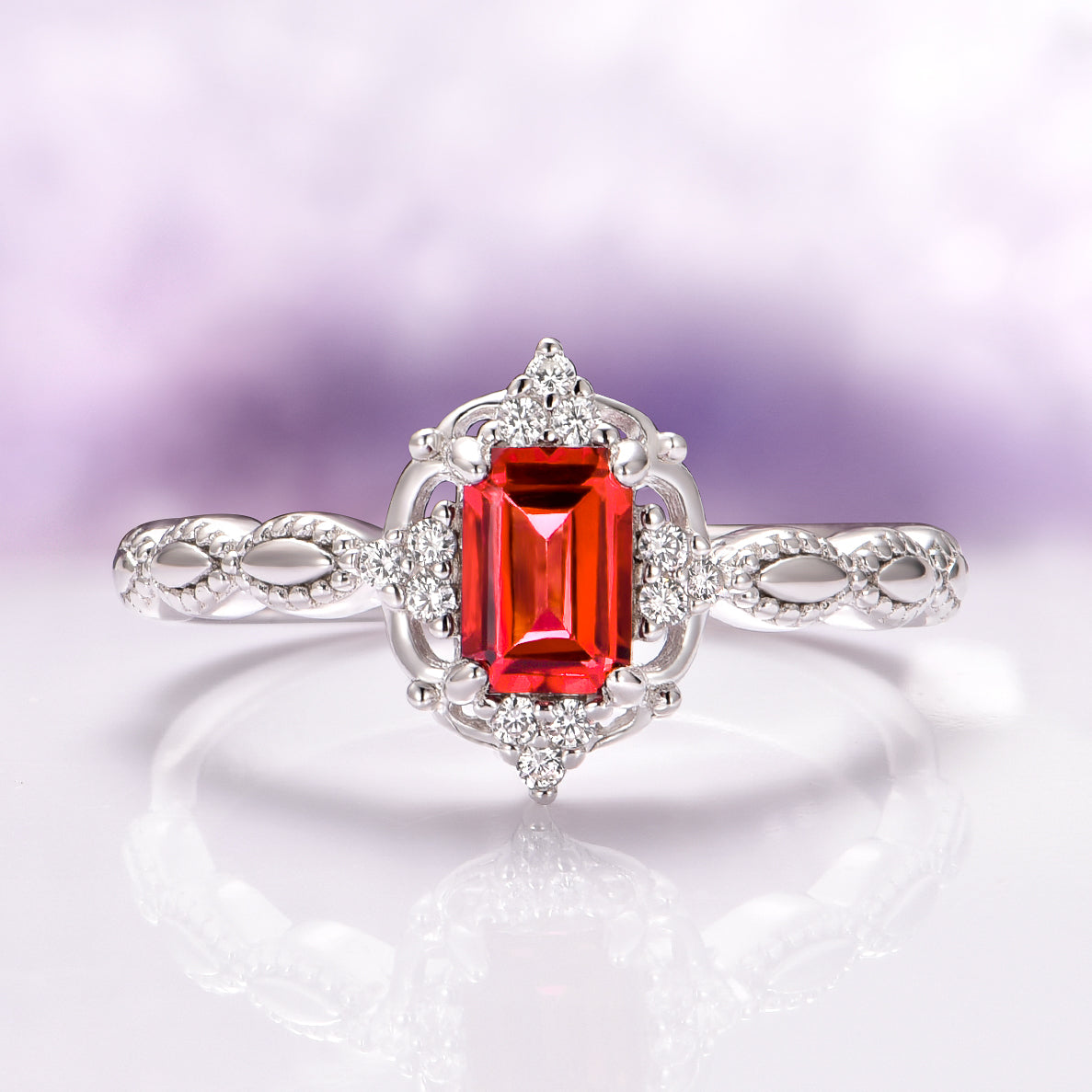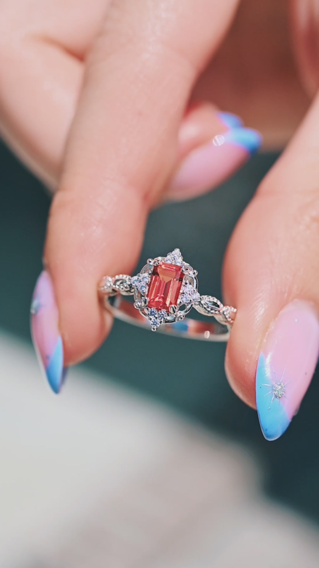 This ring is a modern expression of passion and promise. The warm, glowing hue of the lab-created Padparadscha sapphire symbolizes creativity, emotional depth, and a radiant love. Paired with a high-quality sterling silver band and sparkling accents, it’s a non-traditional engagement or promise ring that leaves a lasting impression.