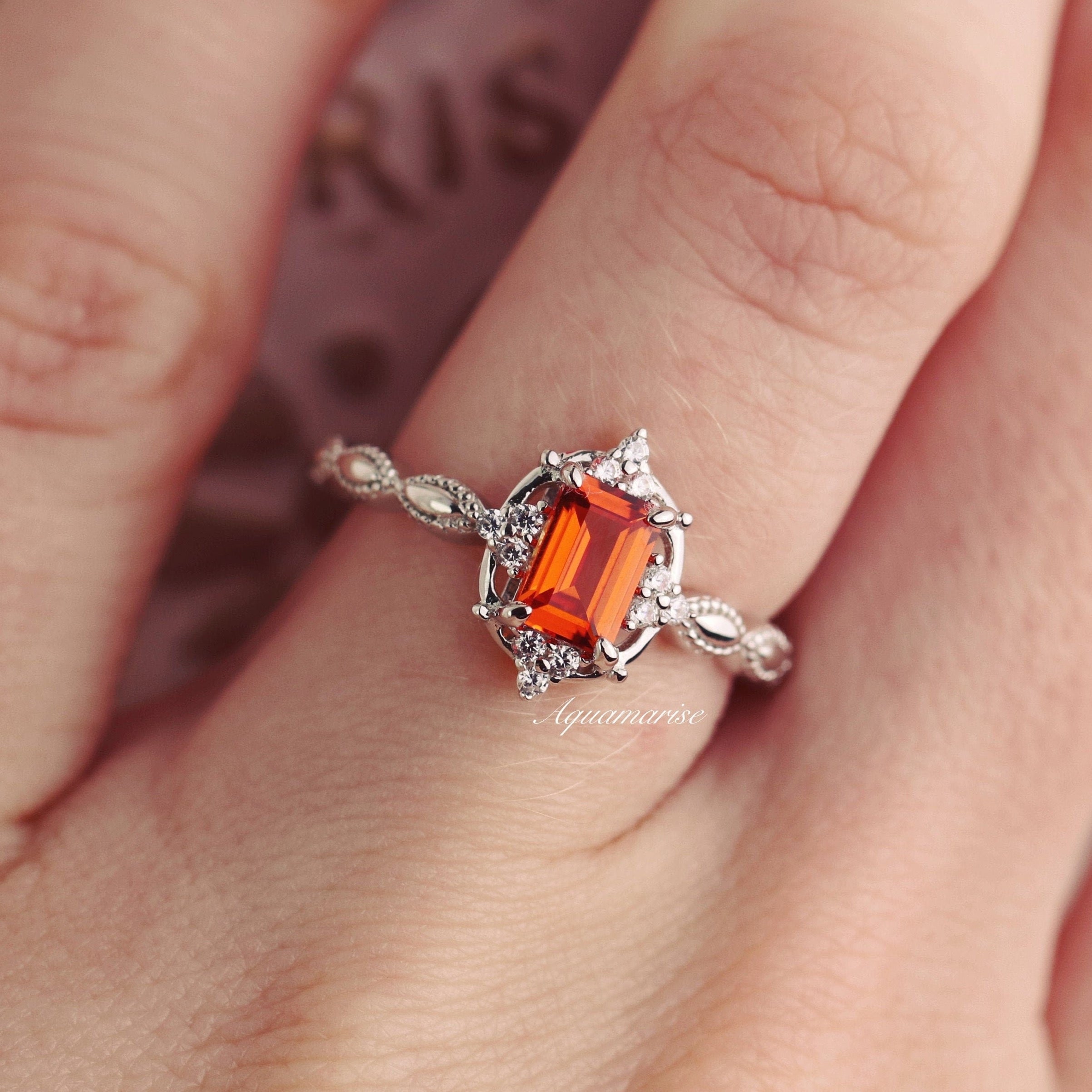 Vibrant Padparadscha Orange Sapphire Engagement Ring – Sterling Silver Promise Ring for Her