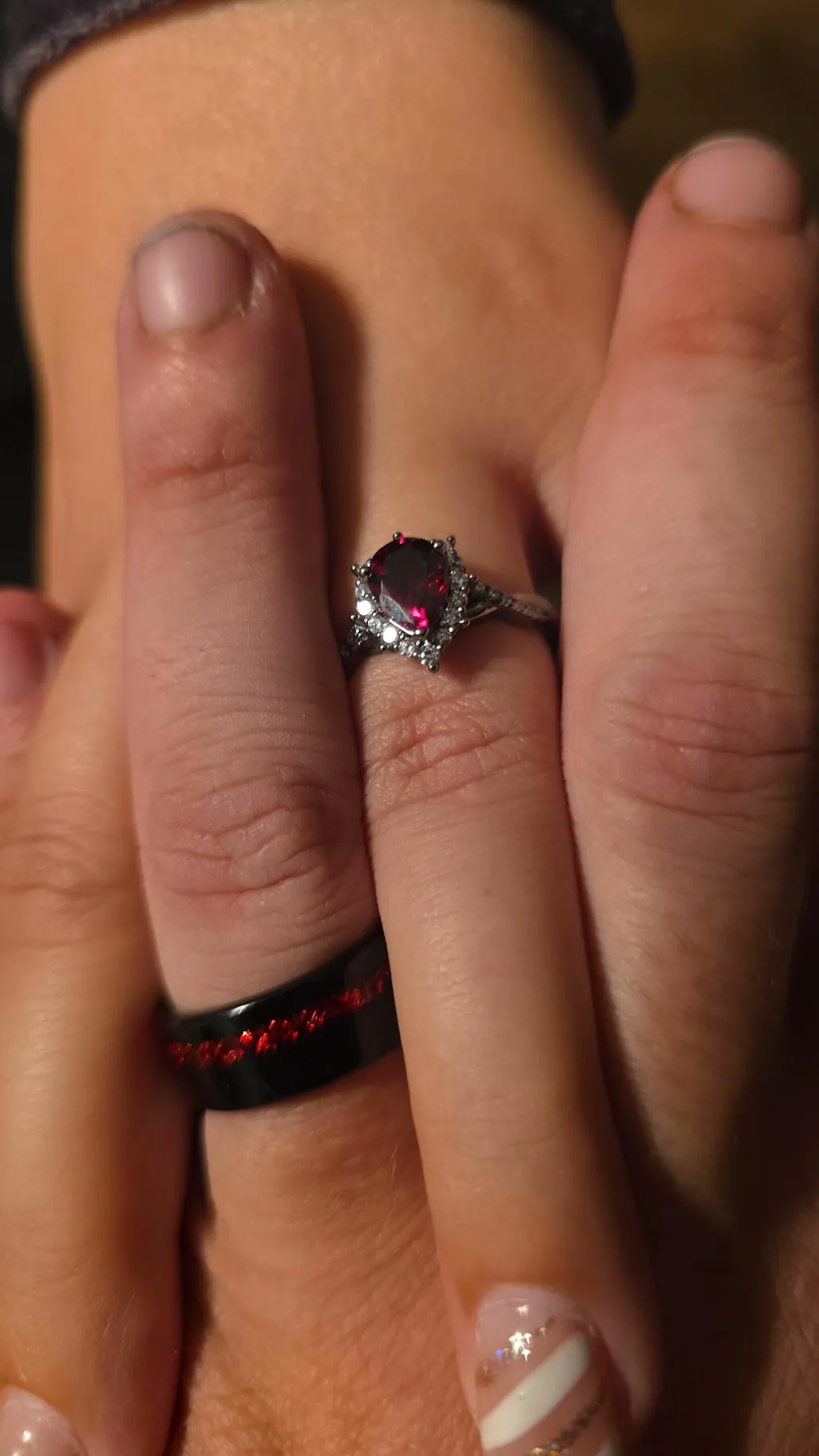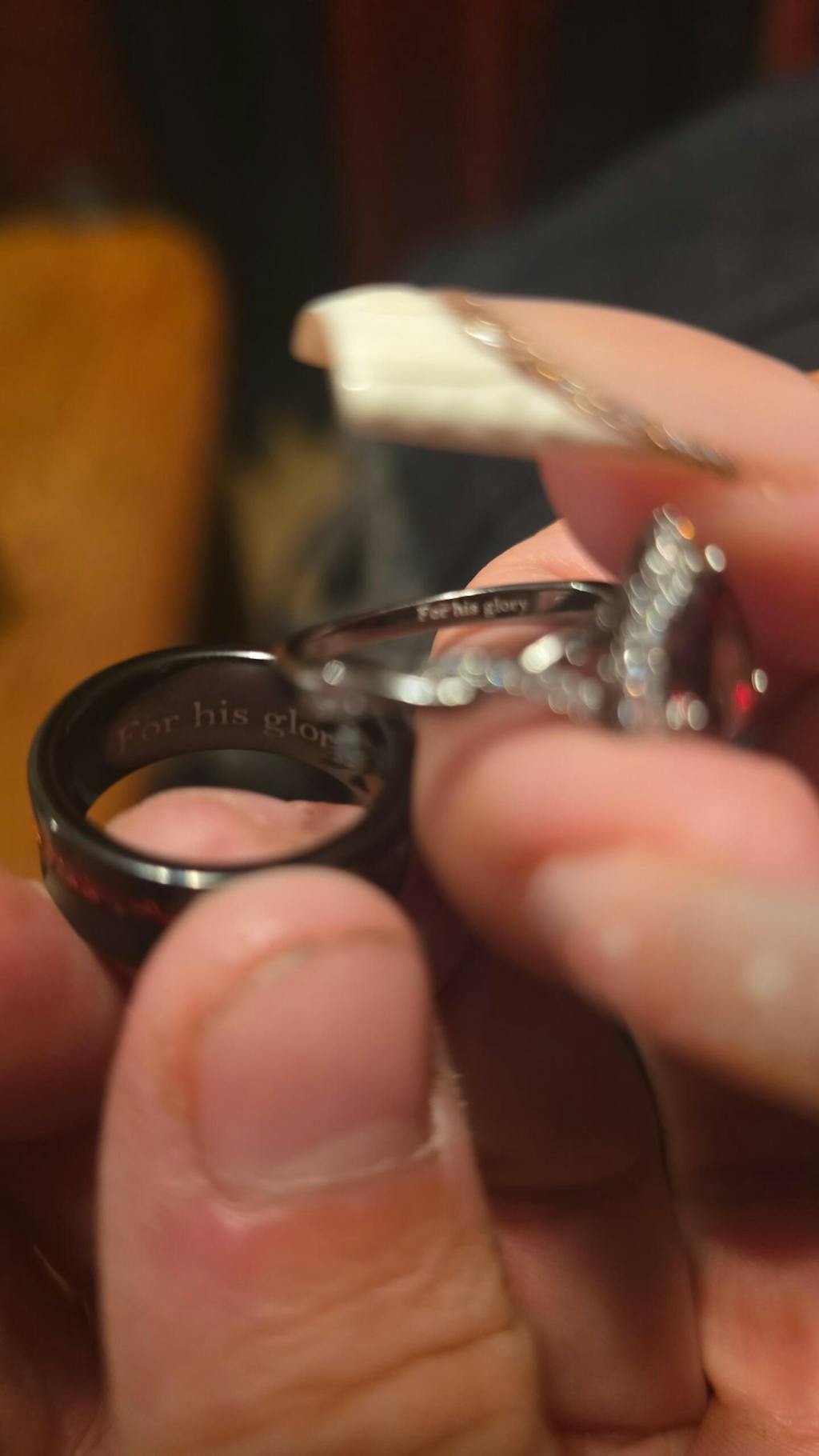 10/10 absolutely beautiful rings. My new fiancé loves her ring and my ring looks just a beautiful. The etching on the inside is perfect and the compliments I've gotten are amazing. Good quality rings at a reasonable price 👌👌