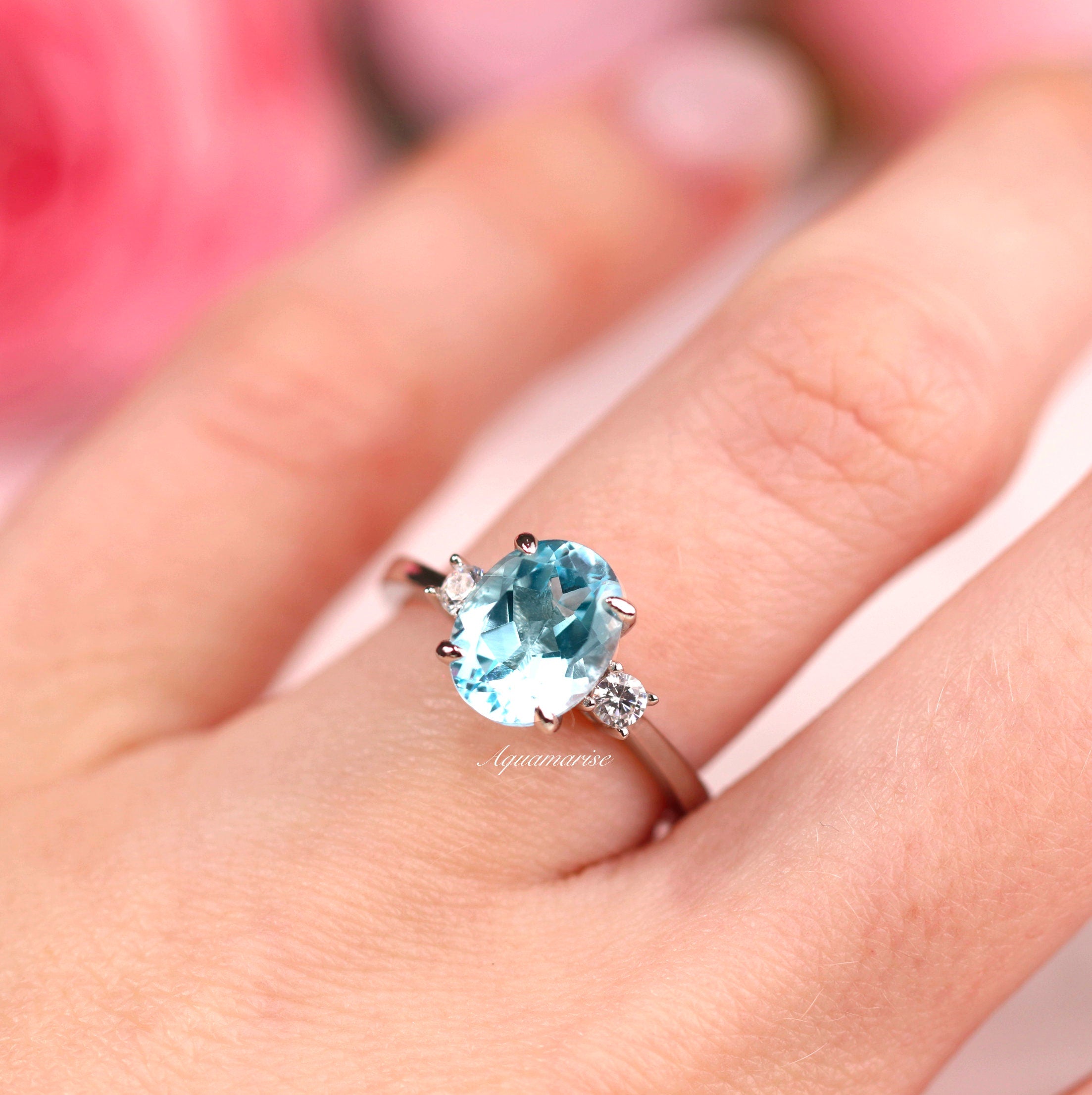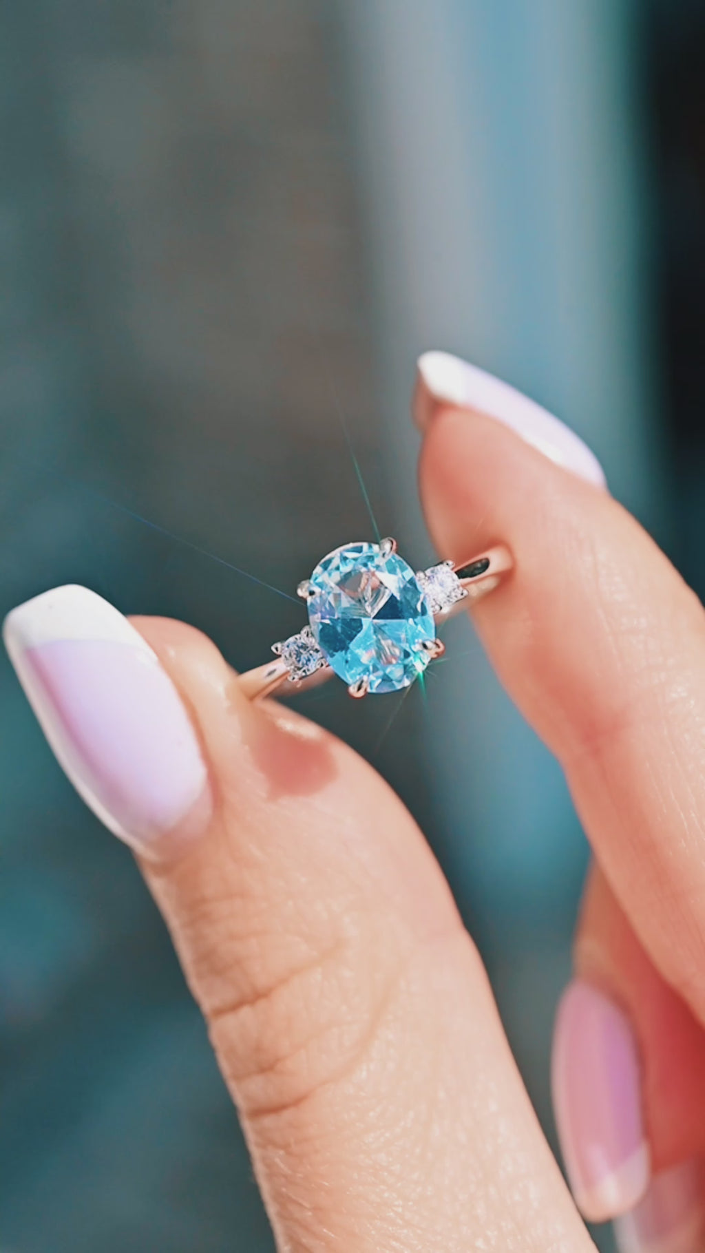 Everly Oval Cut Aquamarine Ring in Sterling Silver