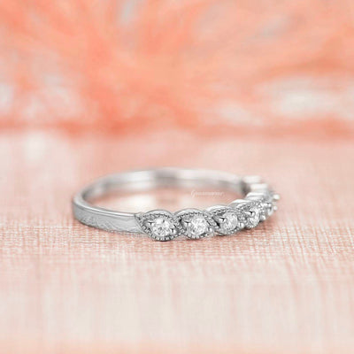 Elevate your love story with this vintage-inspired white sapphire wedding band, crafted in solid 925 sterling silver with a rhodium finish for lasting brilliance and shine. Perfect as a wedding ring, anniversary band, promise ring, or gift for her, this timeless piece blends elegance with durability, making it a cherished symbol of commitment.