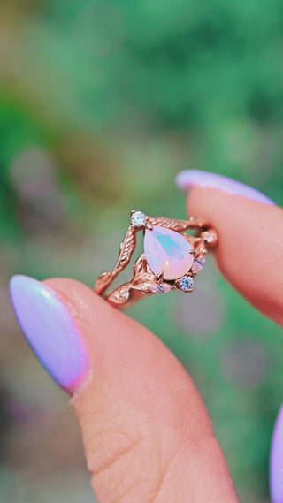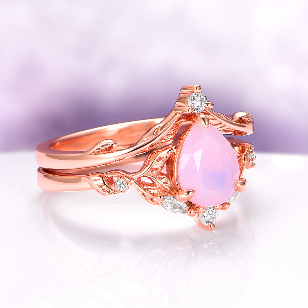 Airee Opalescent Pink Sapphire Engagement Ring Set- 14K Rose Gold Vermeil