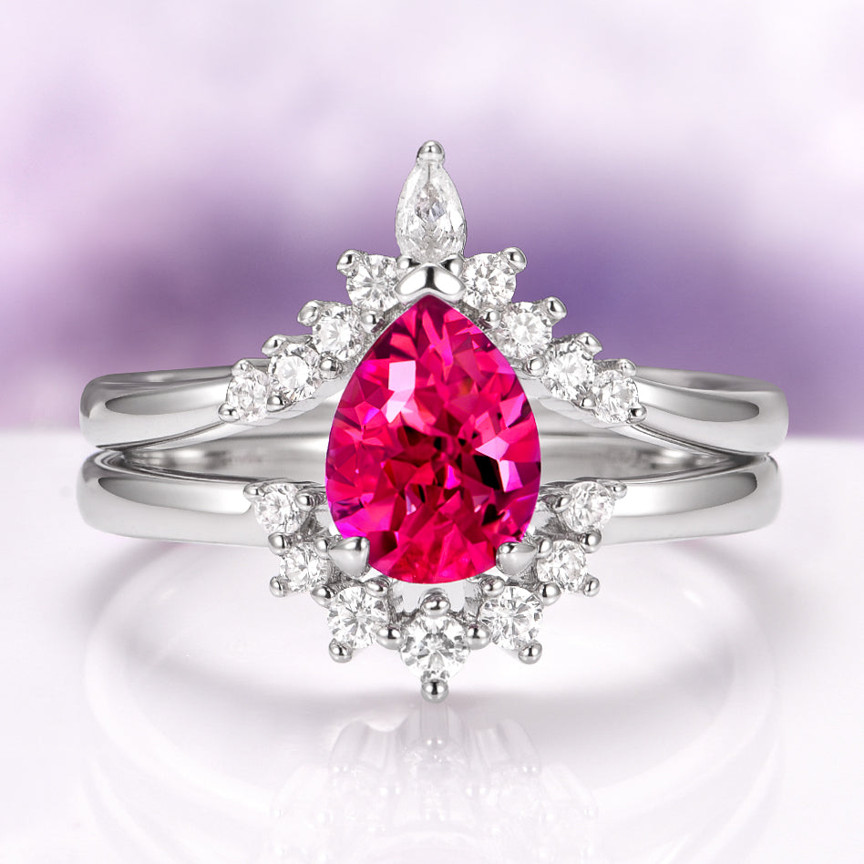 Celebrate love with this stunning Pink Sapphire Bridal Ring Set, crafted in solid sterling silver with a luminous rhodium finish for lasting shine and durability. Whether given as an engagement ring, promise ring, or meaningful anniversary gift, this pink sapphire ring makes a romantic statement with its delicate blush hue and timeless elegance.