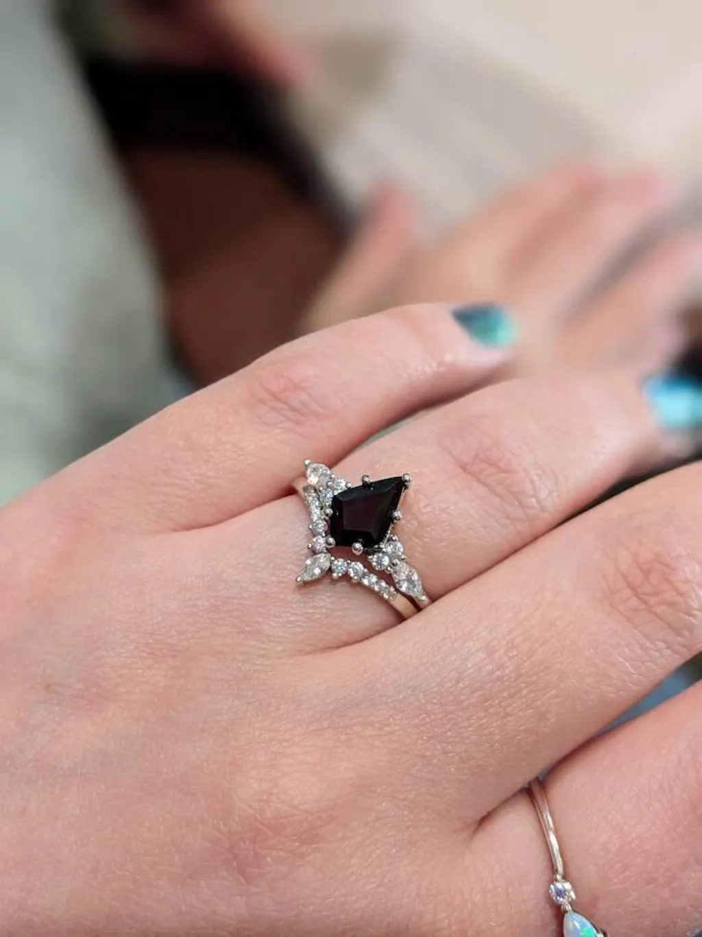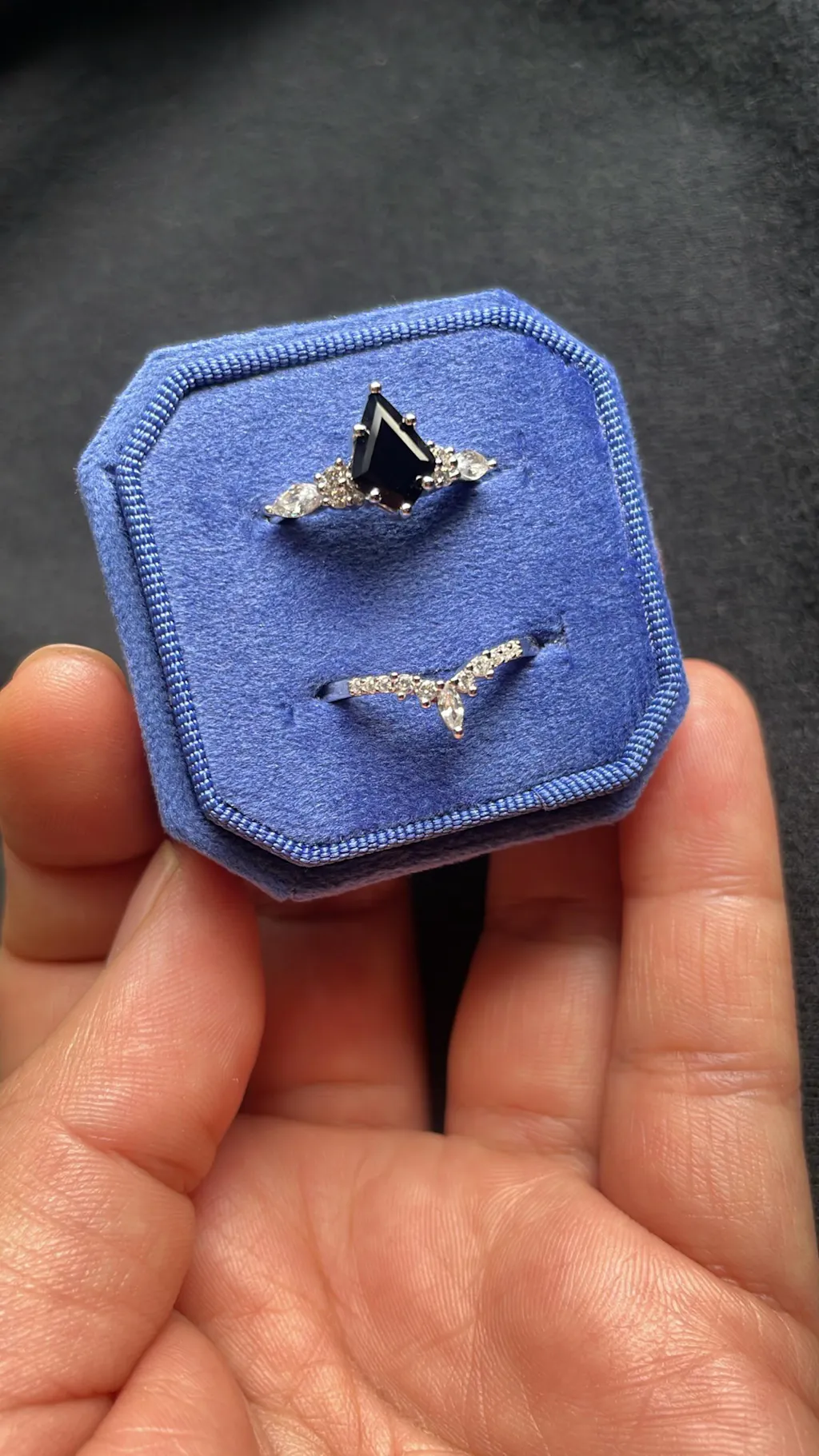 Such a beautiful ring! I had an issue with shipping through USPS they got back to me and with no issue and instead sent it through UPS. I really appreciated that! Words cannot describe how beautiful this ring is. I’m not a traditional girl so looking for a black stone was a must! All I can say is I fell in love with the ring once I opened the cute box it came in!
