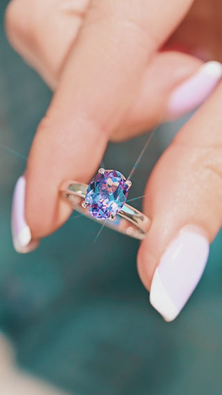 Solitaire 2ct Oval Cut Alexandrite Engagement Ring- Sterling Silver