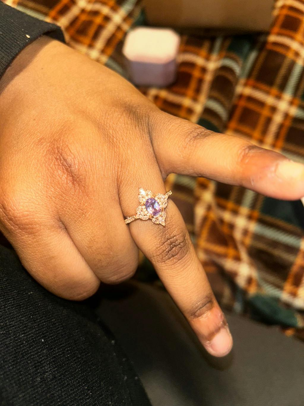 The sizing was perfect, the gemstone was perfect, the box the ring was in was absolutely BEAUTIFUL, and to top it all off, my fiancé added an engraving!!! At first I couldn’t find it and I decided to look inside of the ring. The engraving was astounding and I couldn’t even believe my eyes. Safe to say that I got a little emotional.