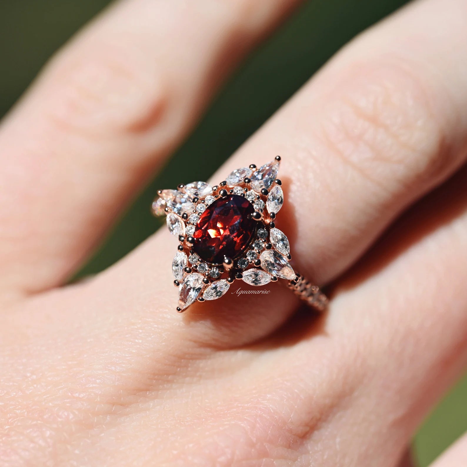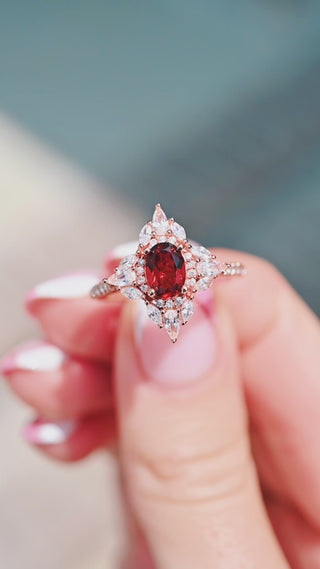 Gorgeous vintage inspired garnet ring made of 14k rose gold over 925 solid sterling silver, making a simple but elegant statement piece. This ring is perfect to wear as engagement ring, promise ring, or birthstone ring.
