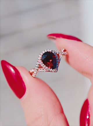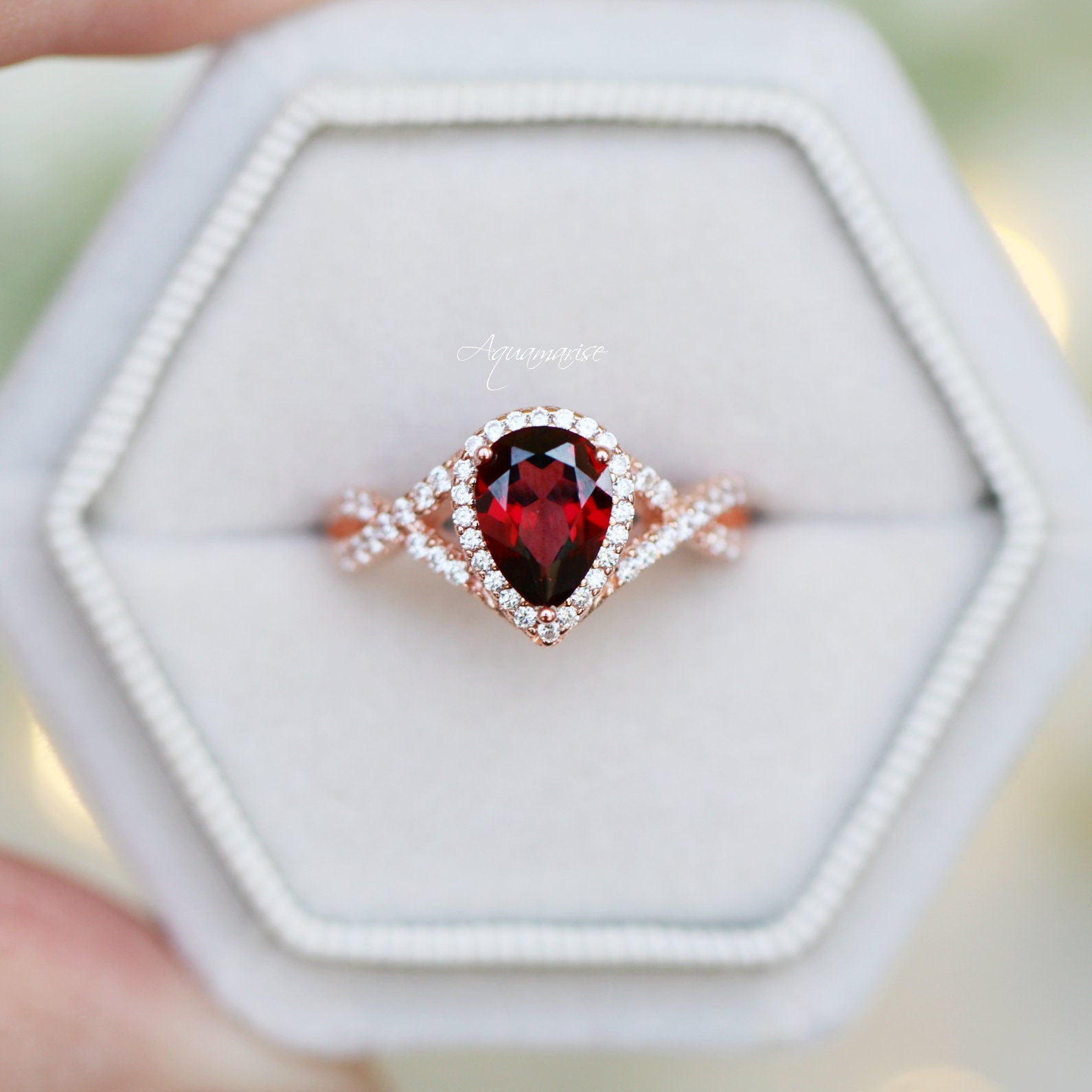 Flair Teardrop Natural Red Garnet Ring in 14K Rose Gold Vermeil