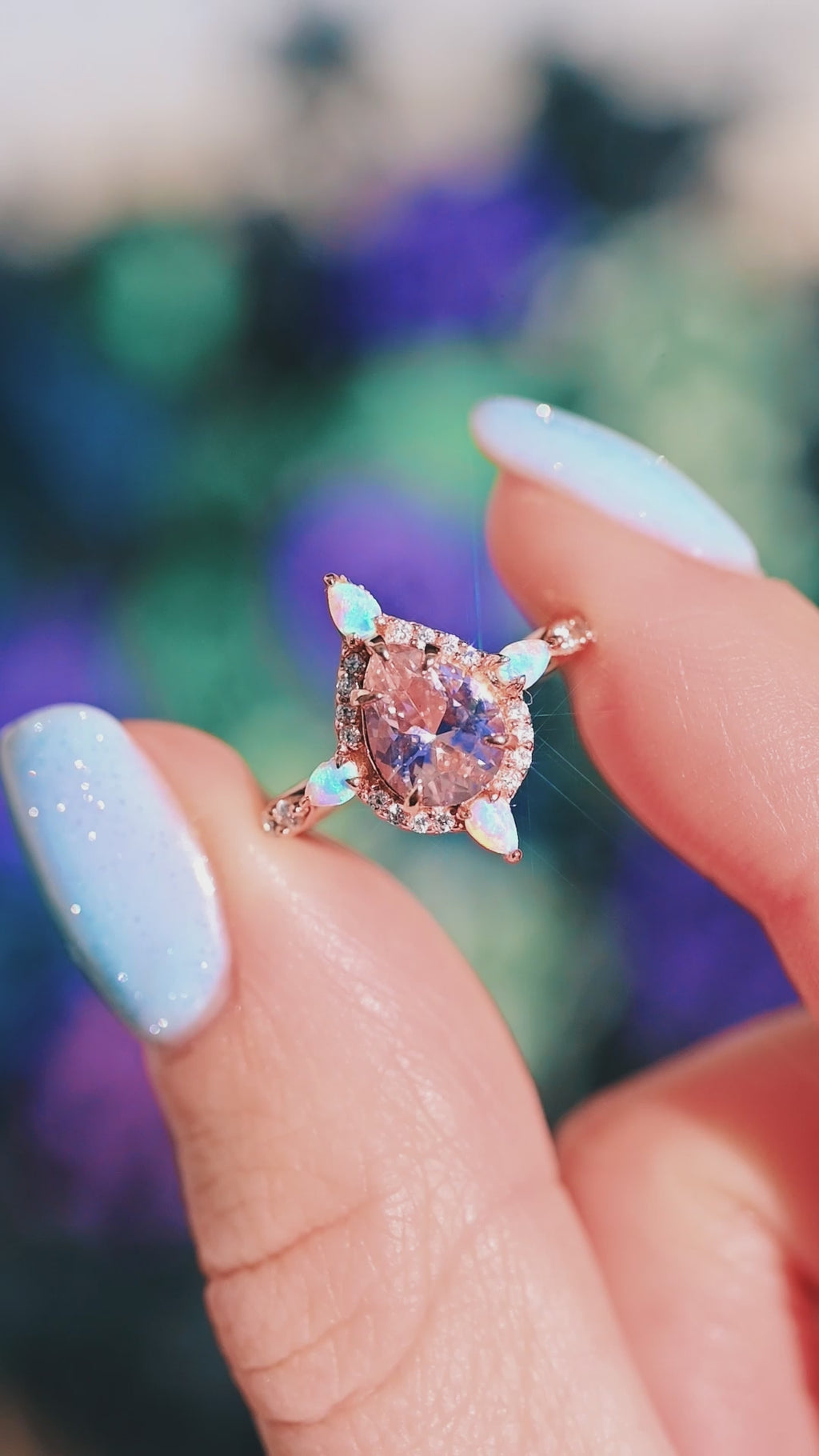 Teardrop Morganite & Fire Opal Ring in 14K Rose Gold Vermeil