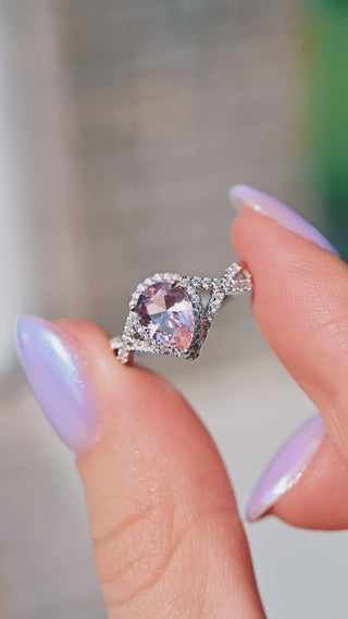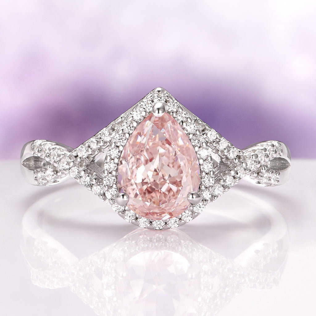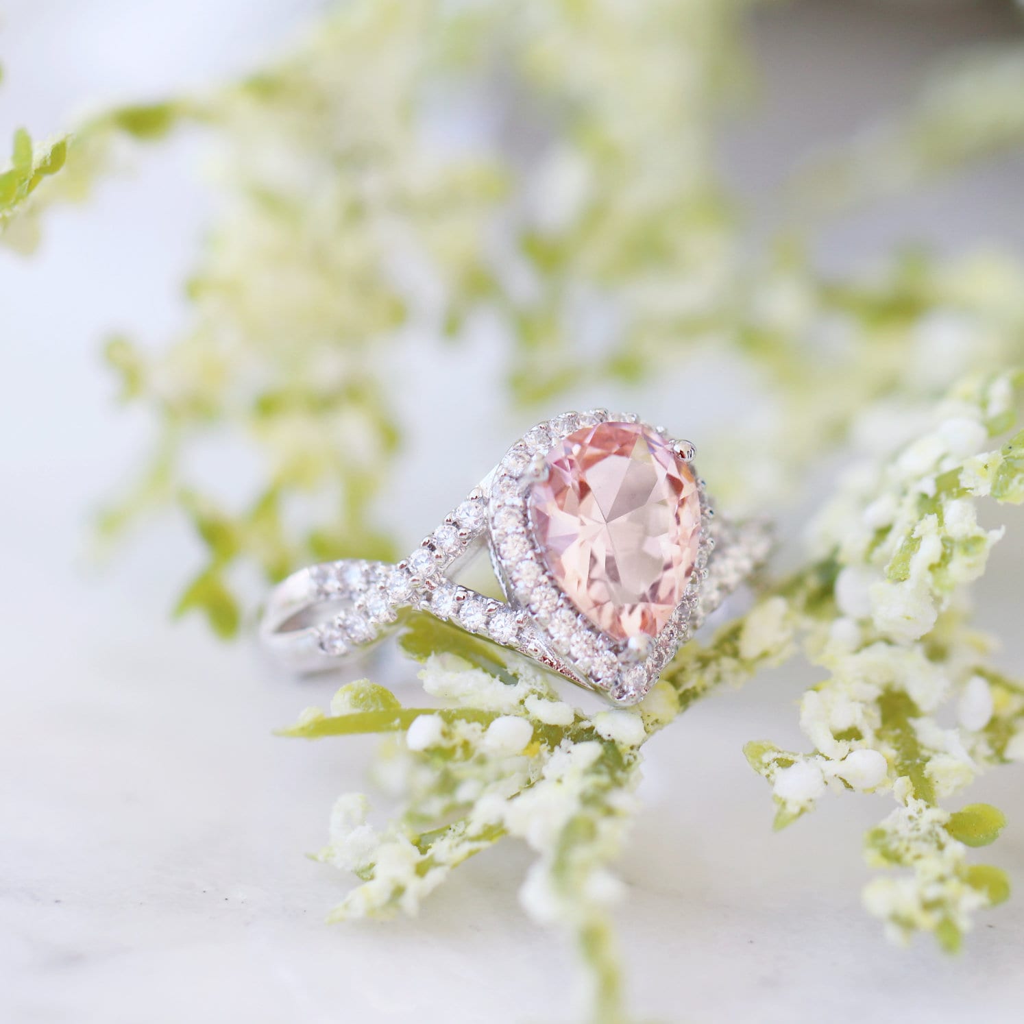 Celebrate love with this enchanting teardrop morganite engagement ring, crafted in solid 925 sterling silver with a rhodium finish for lasting shine. The soft blush pink tones of the simulated morganite center stone are beautifully accented by sparkling simulated diamond (CZ) accents, creating a romantic and timeless design.