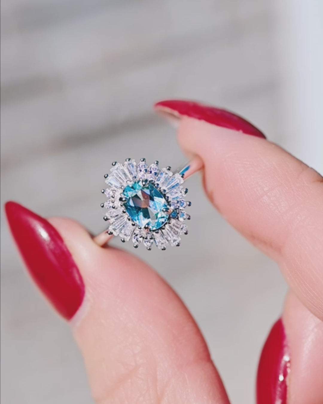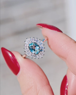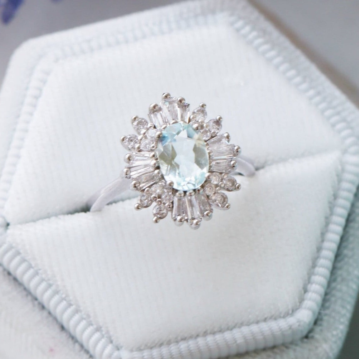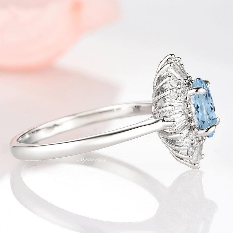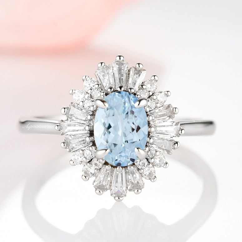 Victoria Art deco Aquamarine Ring- 14K White Gold