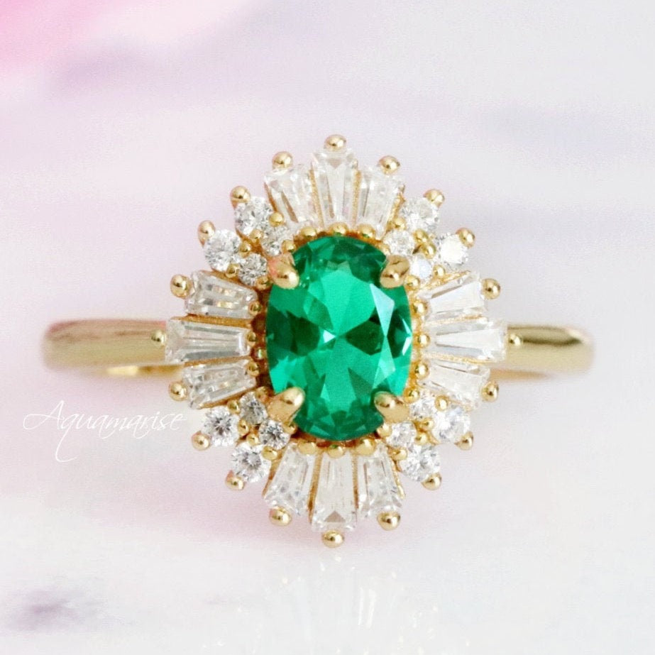 Celebrate timeless elegance with the Victoria Emerald Ring, a vintage-inspired treasure designed for the modern romantic. Drawing inspiration from the glamour of the 1920s Art Deco era, this piece radiates sophistication through its clean geometric lines and brilliant emerald-green centerpiece.