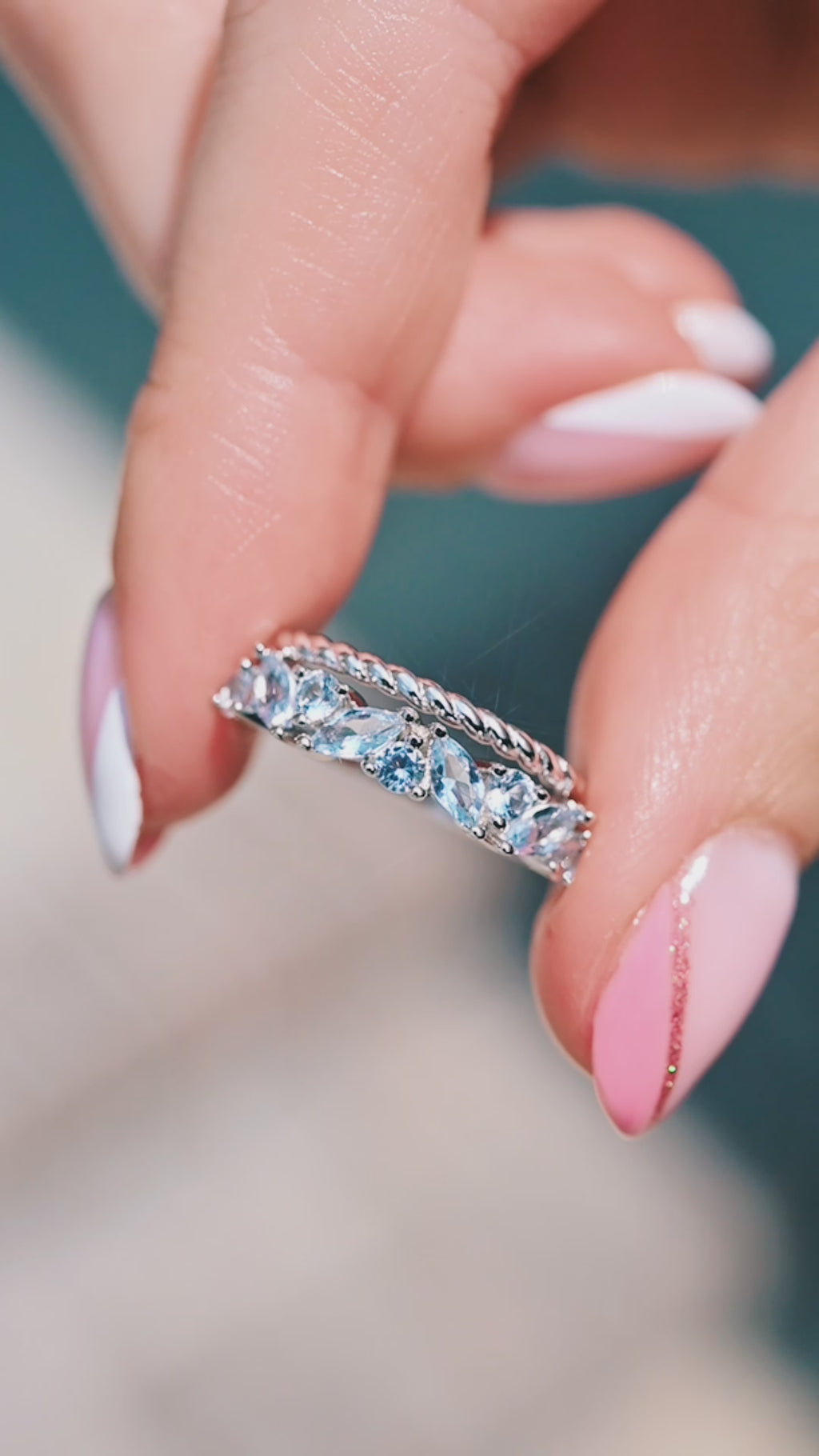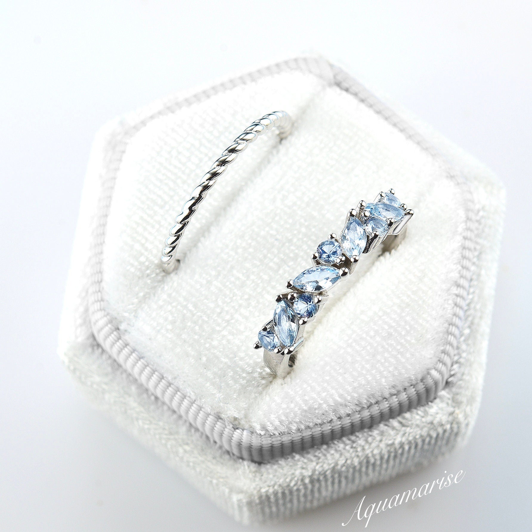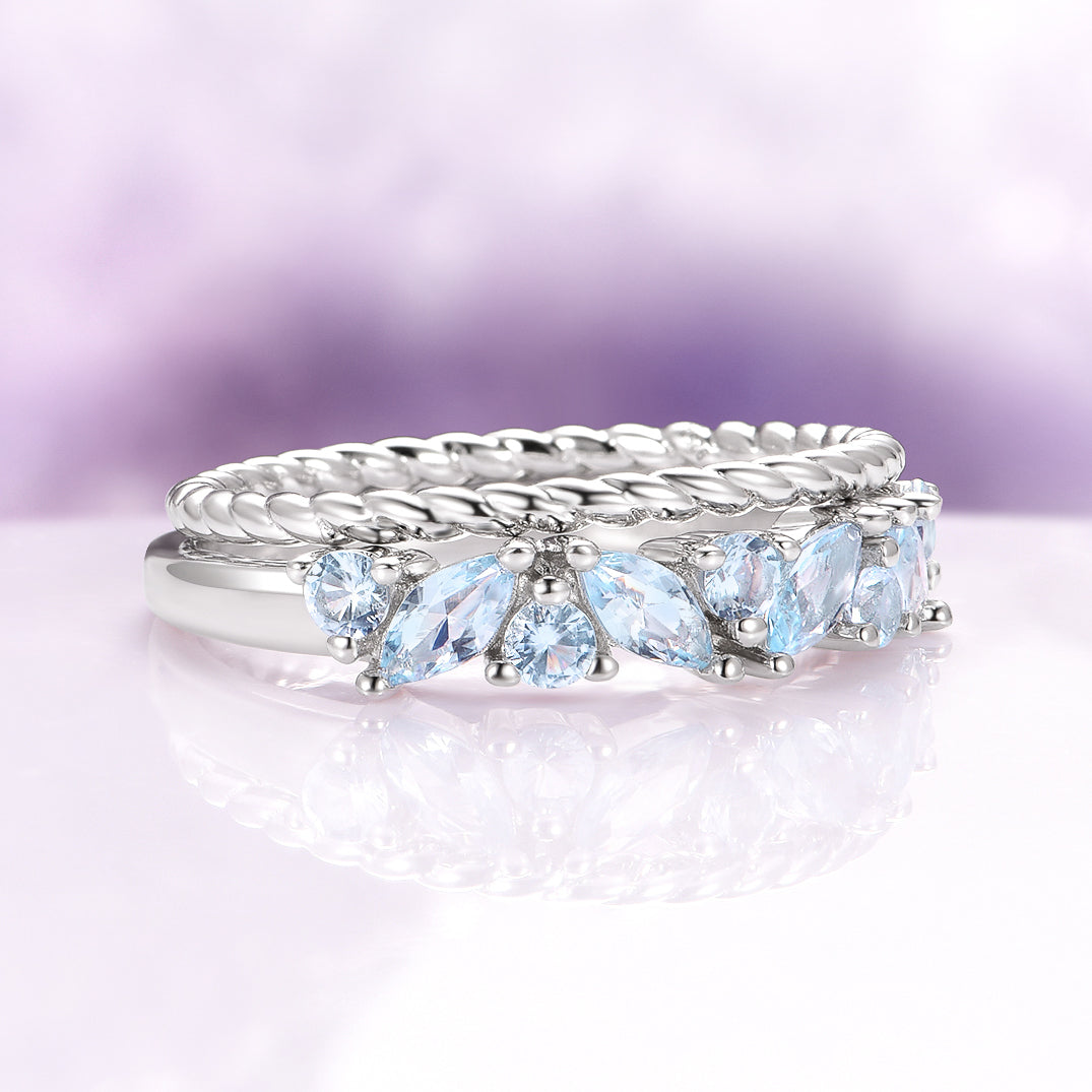 Willow Marquise Aquamarine Stacking Ring Set in Sterling Silver