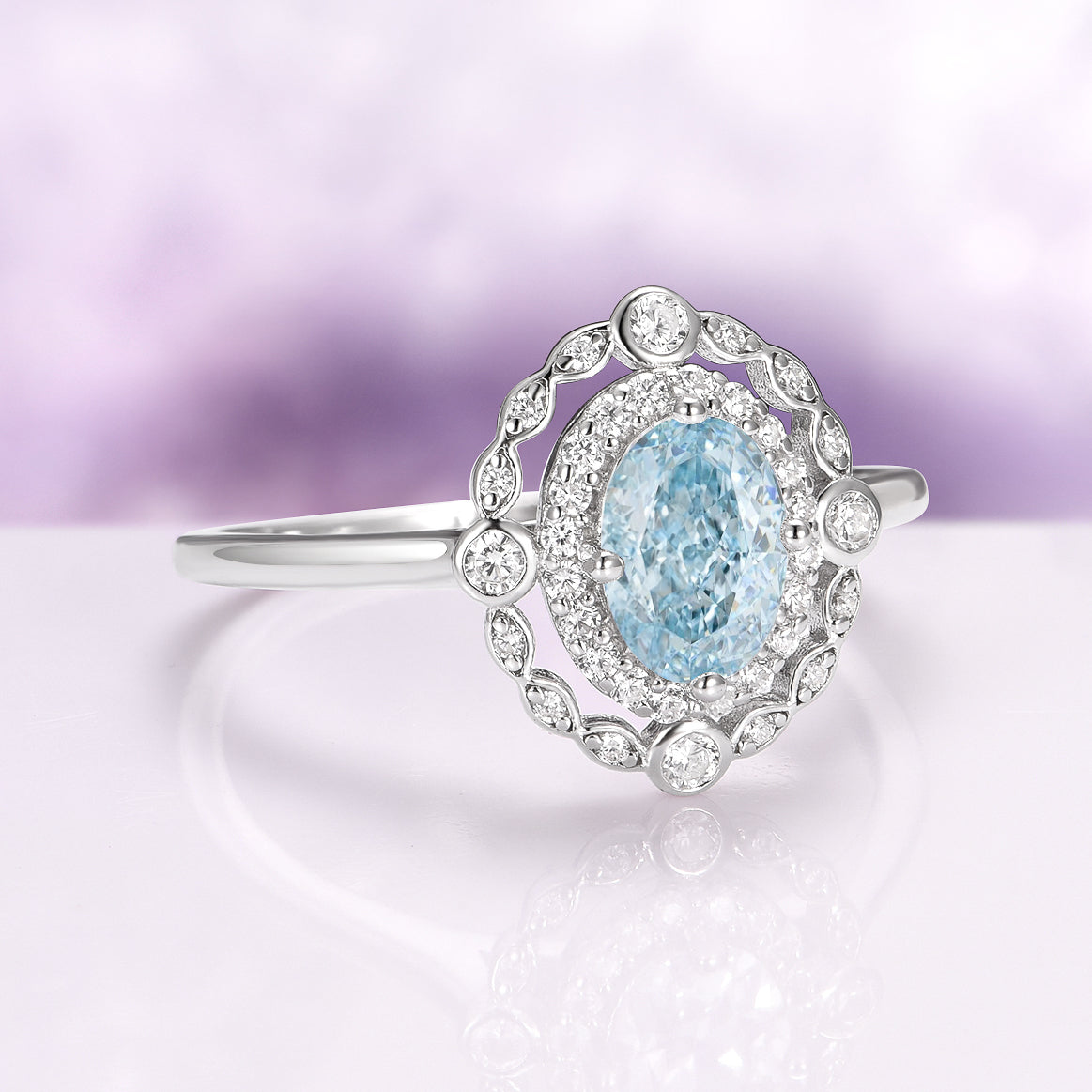 Valentina Vintage Inspired Aquamarine Engagement Ring in Sterling Silver