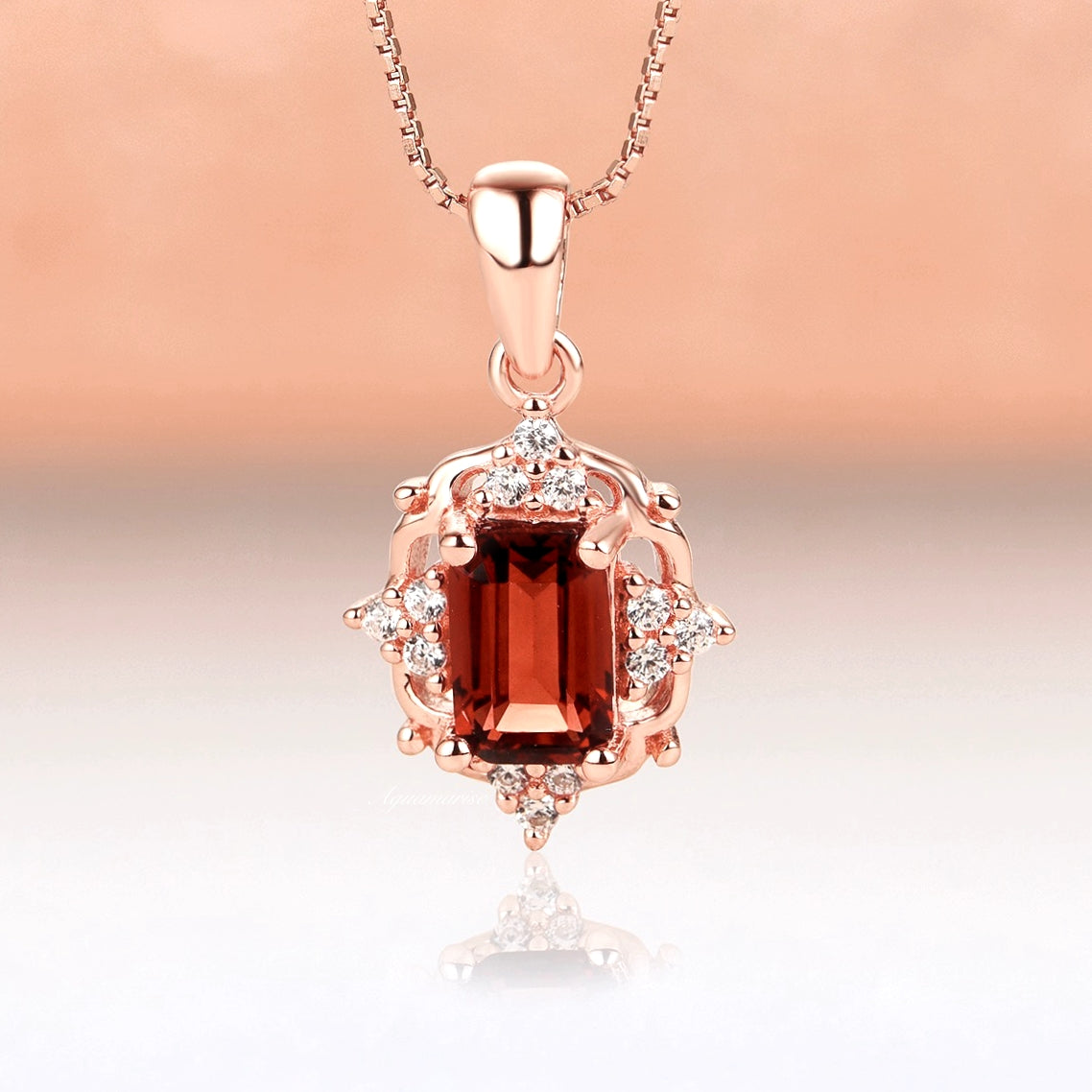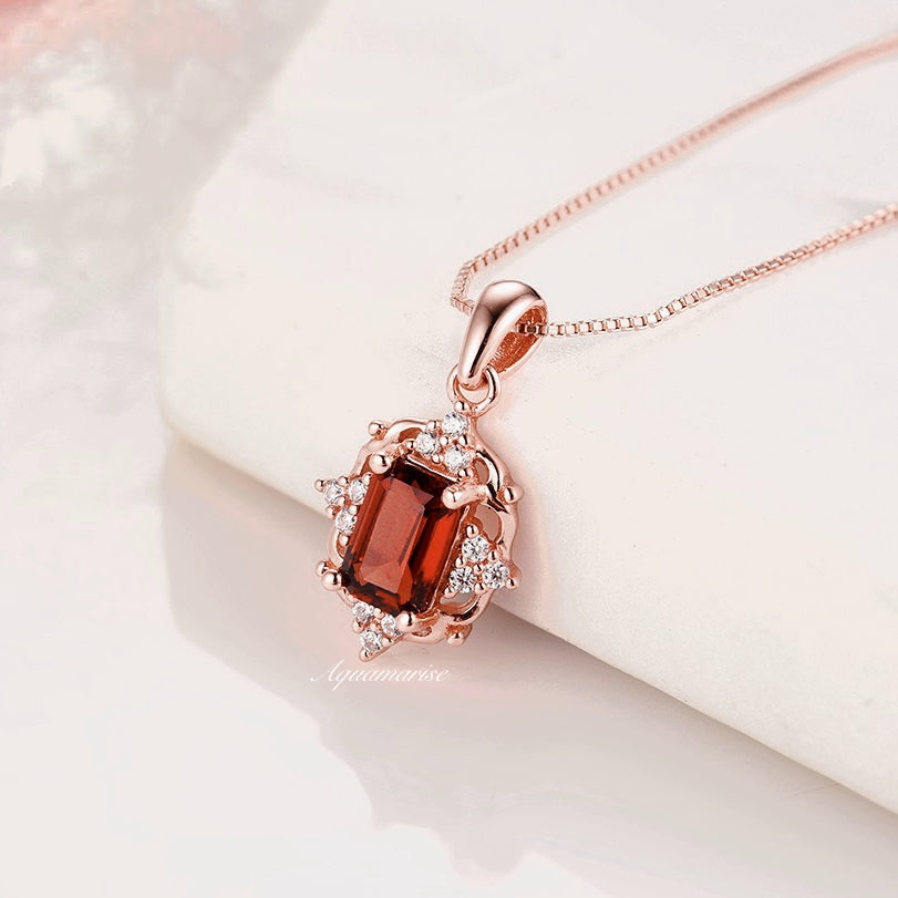 Vintage Natural Red Garnet Necklace in 14K Rose Gold Vermeil