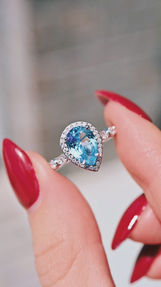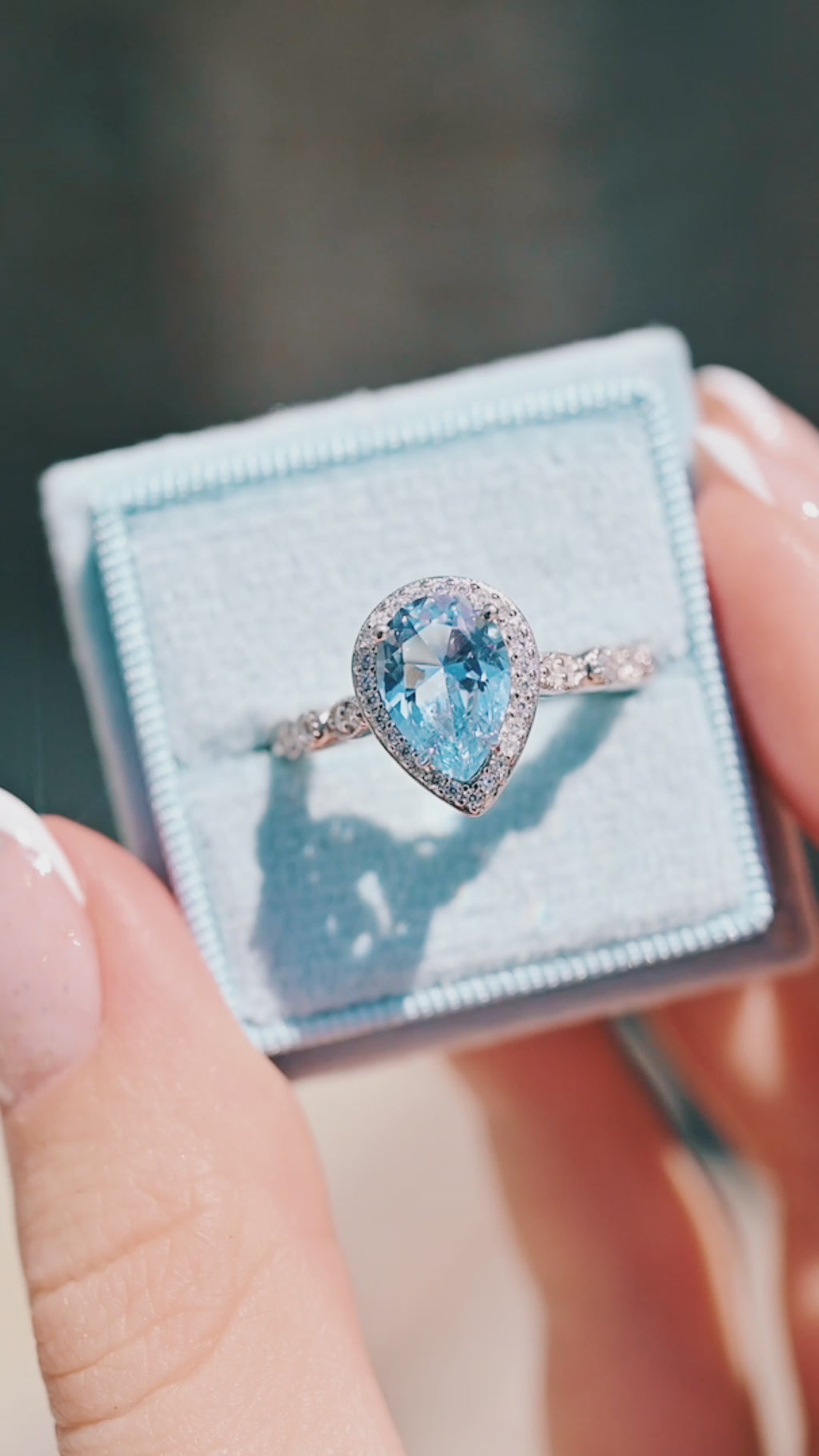Make a timeless statement with this vintage-inspired Teardrop Aquamarine Engagement Ring, beautifully crafted for those who cherish elegance with a touch of originality. Featuring a stunning 2 ct. lab-created aquamarine in a classic teardrop cut, this ring is accented by shimmering simulated diamonds in a delicate Art Deco setting—perfect as a promise ring, engagement ring, or meaningful gift for a March birthday.